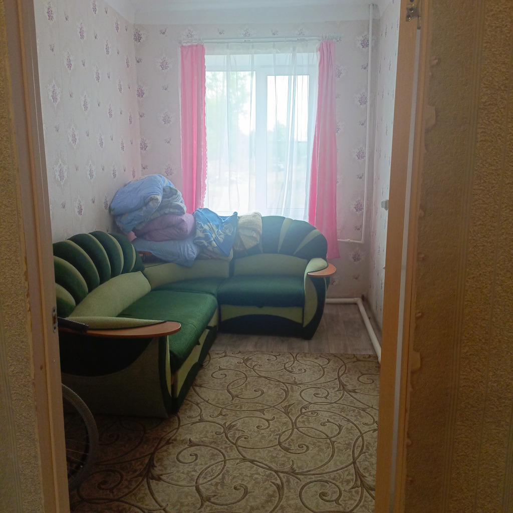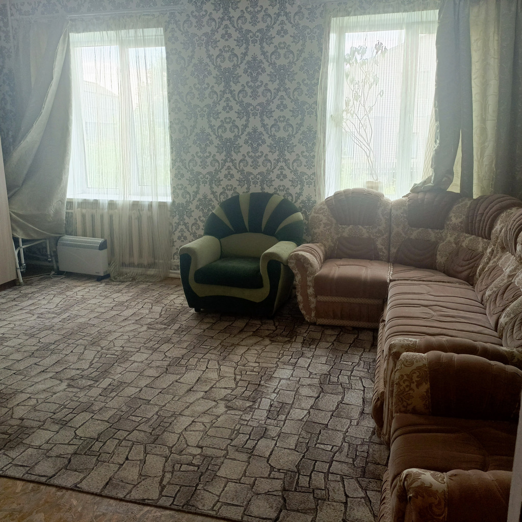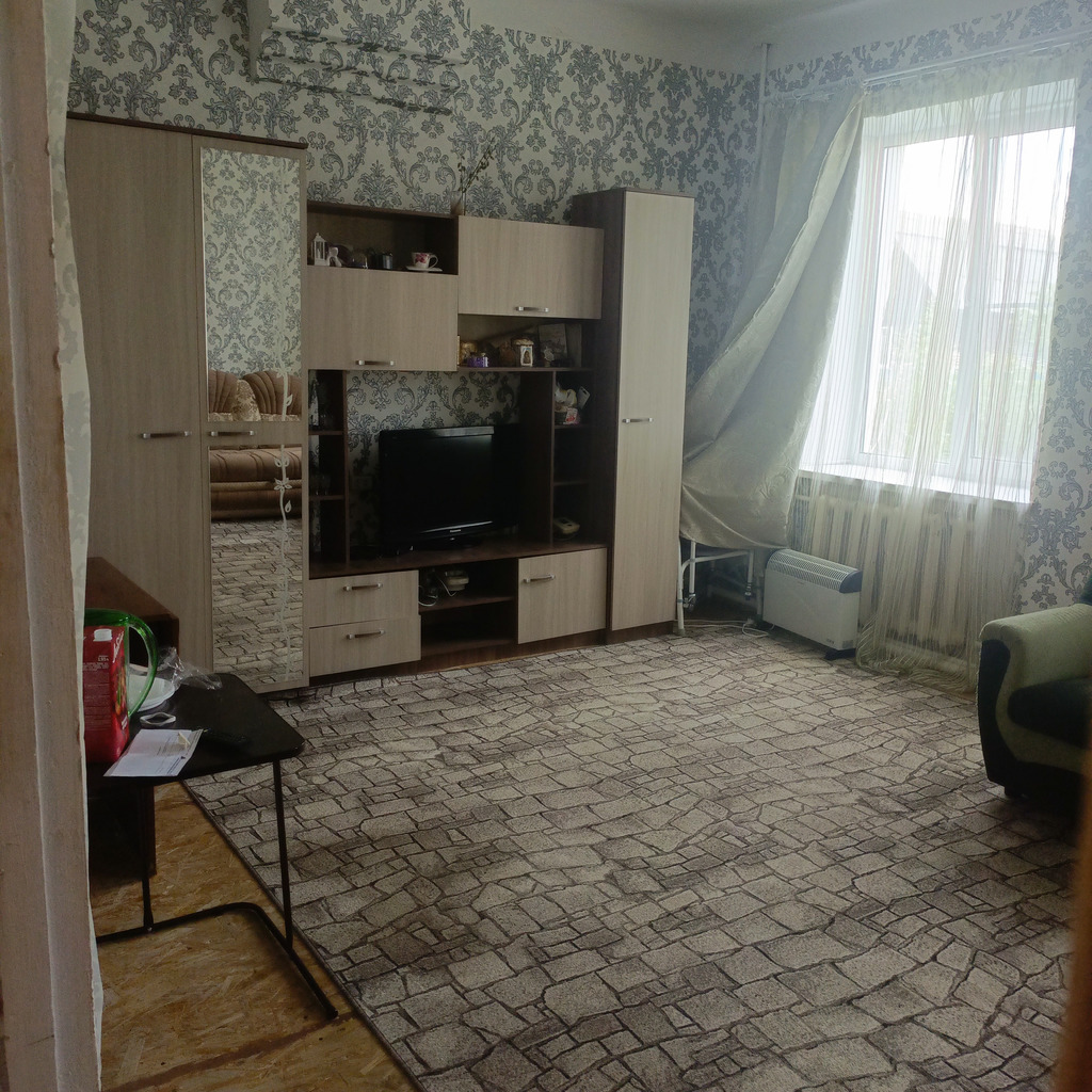 В квартире есть все необходимое для проживания,в квартире два дивана,при необходимости можно установить дополнительно спальные места,квартира большая,теплая,проблем с горячей водой нет,есть все отчетные документы,находится от города в 20 минутах ходьбы(Вам желательно иметь машину),рядом есть магазины,есть так же возможность организации бани (через дорогу,за отдельную плату)