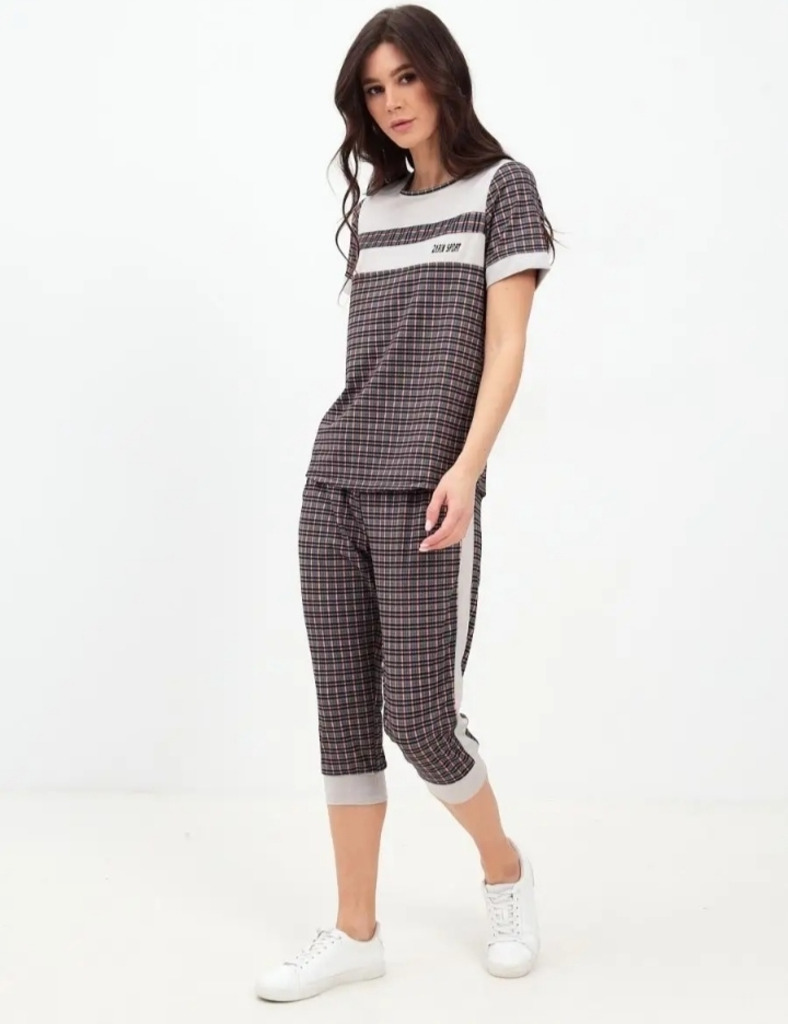Женский домашний костюм из поликоттона, производство Узбекистан, практичный в использовании, не мнётся, бриджи с карманами.