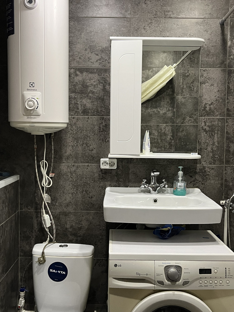 Санузел совмещенный, оснащен современной сантехникой и водонагревателем. Из окон открывается вид на торговый цент,есть открытая парковка. Лоджия застеклена, что позволяет использовать ее как дополнительное пространство для хранения или отдыха.