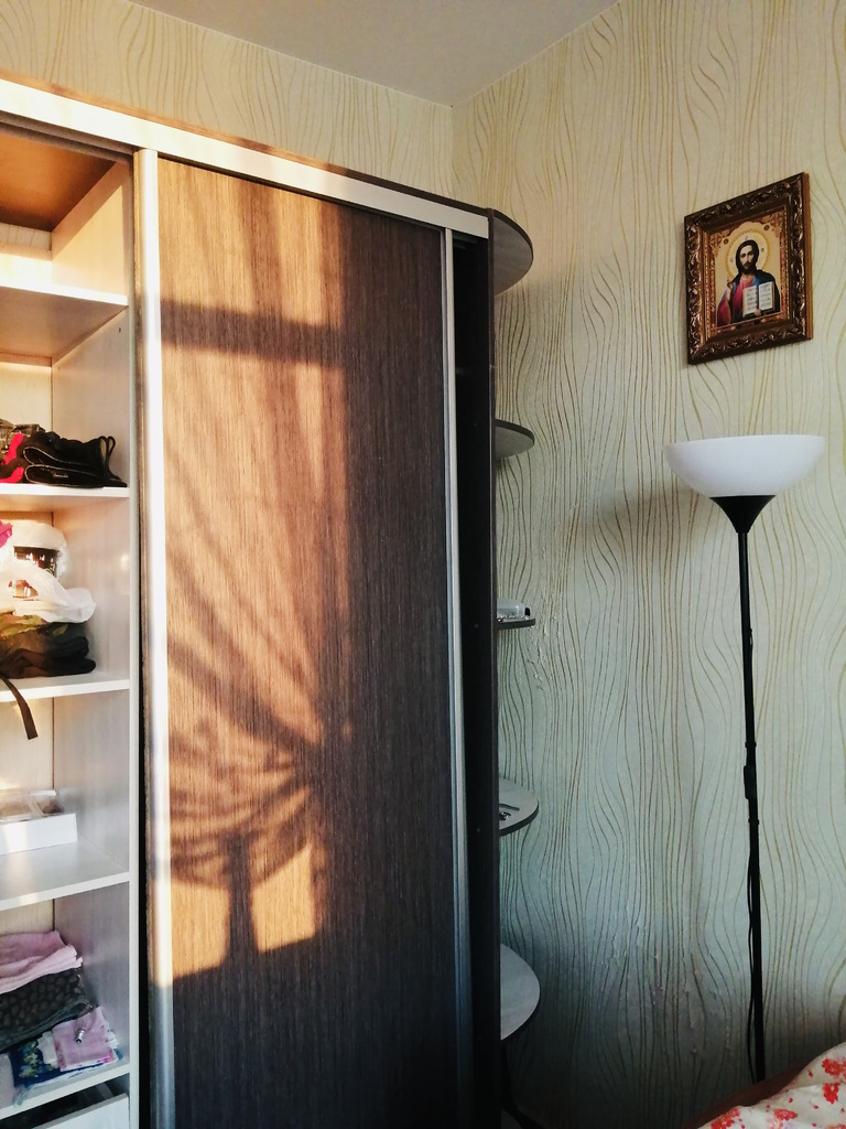 Чистотая и светлая. Теплая. Стиральная машина микроволновая печь и холодильник. На кухне все есть. Шкафы для хранения. Нет кровати.