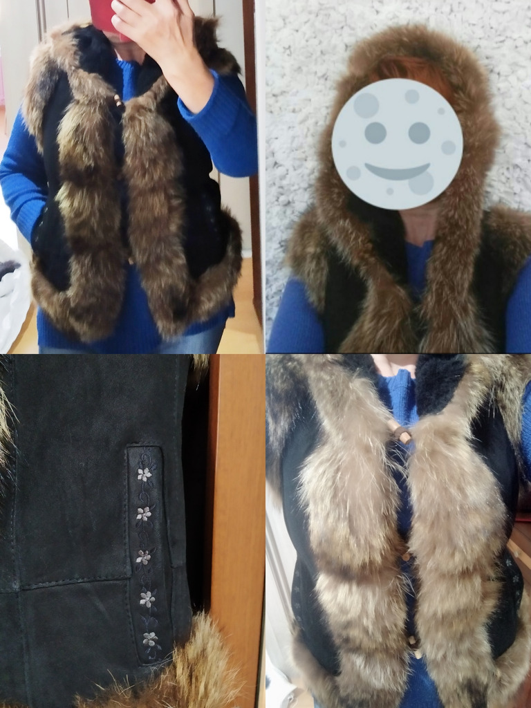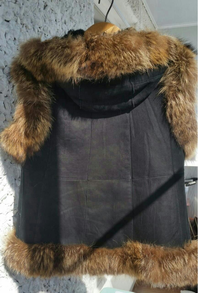 Новая меховая жилетка, с карманами и капюшоном, мех натуральный.